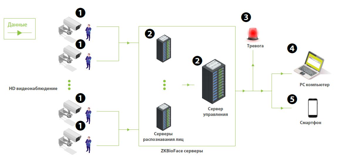Система поддерживает 128 каналов видеонаблюдения и распознавания на нескольких серверах и 28 каналов на одном сервере. Администраторы могут удаленно войти в систему и получить доступ к интерфейсу управления.
