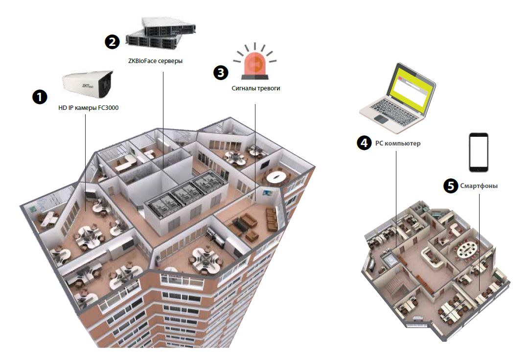 Полная интеграция с камерами ZKTeco для распознавания лиц серии FC, поддерживает функции IR, WDR и ICR для различных типов освещения.