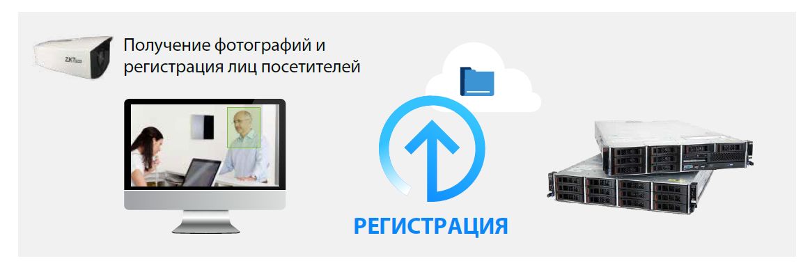 Поддержка загрузки изображения лиц в режиме реального времени. Администраторы используя полученные камерами изображения могут производить регистрацию посетителей и создавать учетные записи в системе.