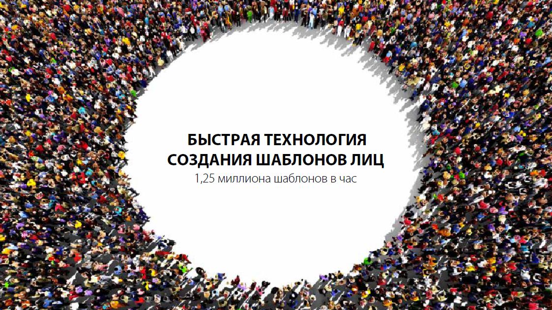 Быстрая регистрация лиц - менее 0,02 секунды на шаблон, до 1,25 млн. шаблонов в час.