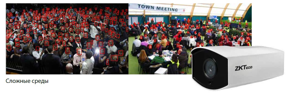 Инновационный алгоритм распознавания лиц значительно расширяет возможности ZKBioFace по распознаванию лиц в сложных условиях. Интеграция с аппаратными средствами, включая функции IR, WDR и ICR, обеспечивает высокую скорость распознавания.