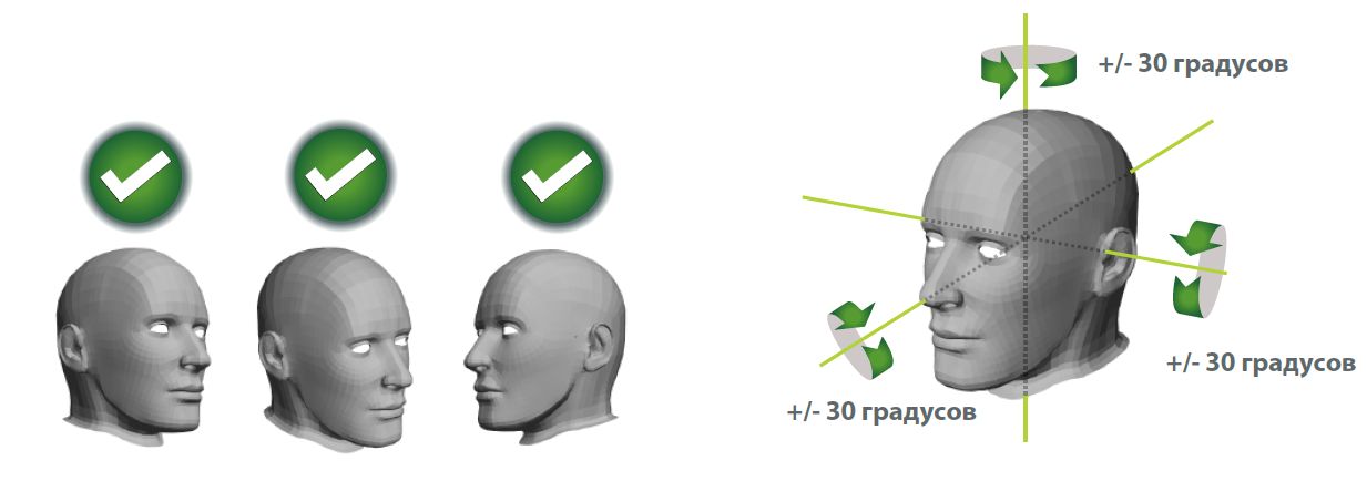 В то время как большинство алгоритмов поддерживают только распознавание лица под углом 15 градусов, ZKBioFace поддерживает распознавание лица под углом 30 градусов.