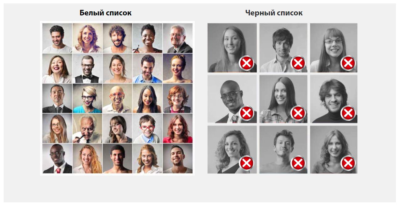Система поддерживает черный и белый списки и может автоматически при идентификации людей из черного списка и подавать сигнал тревоги для сотрудников службы безопасности.