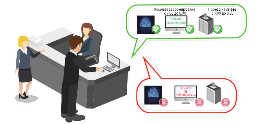 Например, чтобы забронировать на определенное время классные комнаты для преподавания и лифт, пользователь выбирает соответствующую дату и время через веб-платформу программного обеспечения ZKBioSecurity и после сканирования отпечатка пальца получает подтверждение. Процедура биометрической идентификации гарантирует, что человек уполномочен и имеет право производить соответствующие действия.