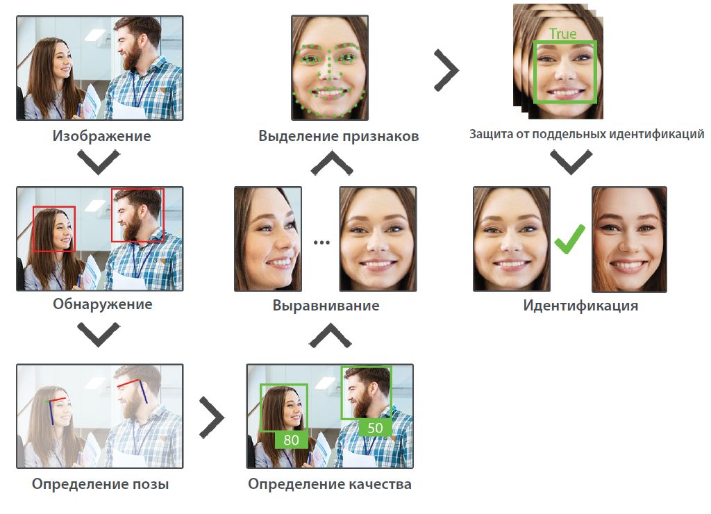 Традиционное распознавание лиц проходит через четыре основных этапа: обнаружение, выравнивание, извлечение признаков и распознавание. Усовершенствованное распознавание лица в видимом свете включает в себя несколько дополнительных этапов, чтобы дополнить эту технологию.